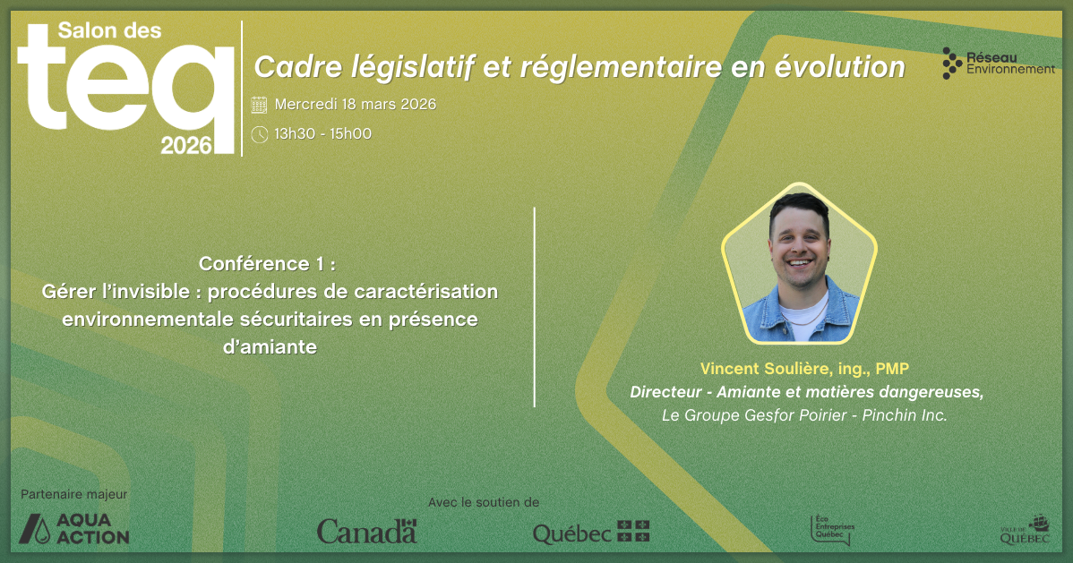 Cette présentation aborde les enjeux principaux associés à la présence d’amiante dans les sols et remblais lors des phases de caractérisation environnementale préalables aux projets de réhabilitation et de construction. Elle mettra en lumière les procédures de travail sécuritaires, élaborées conformément au Code de sécurité pour les travaux de construction (CSTC), au Règlement sur la santé et la sécurité du travail (RSST) et à la Loi sur la santé et la sécurité du travail (LSST). Ces procédures visent à réaliser les échantillonnages de façon sécuritaire tout en protégeant les travailleurs (techniciens, foreurs, opérateurs, etc.). Les méthodes de caractérisation typiques, telles que les tranchées exploratoires, la mise en pile et le forage, seront présentées et discutées sous l’angle des bonnes pratiques en matière de santé et sécurité.