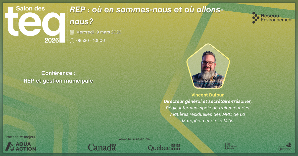 Conférencier : Vincent Dufour, Directeur général et secrétaire-trésorier, Régie intermunicipale de traitement des matières résiduelles des MRC de La Matapédia et de La Mitis