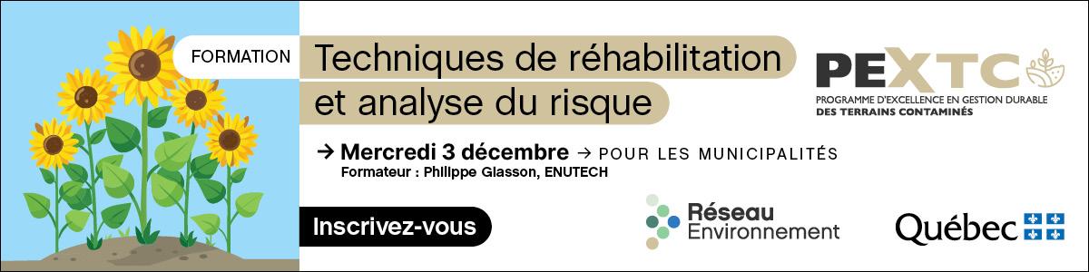 Cette formation est dédiée aux villes membres du programme d’excellence pour la gestion des terrains contaminés (PEXTC). Toute personne intéressée à adhérer au programme et à bénéficier de cette formation ainsi que de toutes les formations passées et à venir est invitée à contacter la coordonnatrice du programme en cliquant sur le bouton "Je m'inscris".