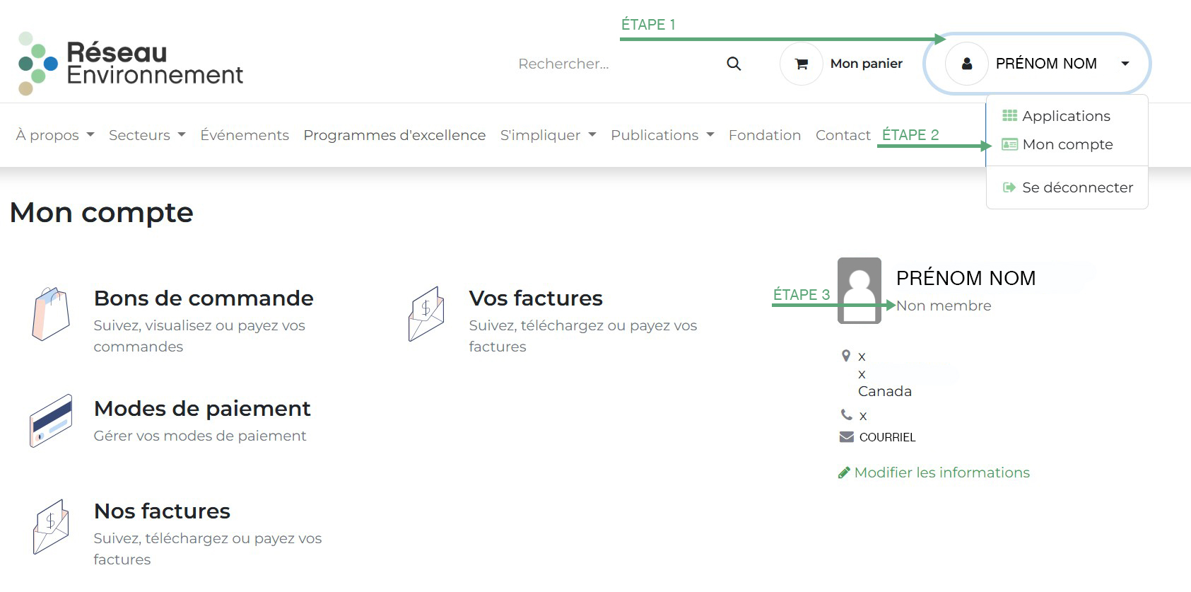 Connectez-vous à votre compte, puis cliquez en haut à droite sur votre nom, cliquez sur "Mon compte" dans le menu déroulant, vous verrez ensuite à côté de votre photo, sous votre nom, si vous êtres membre ou non.