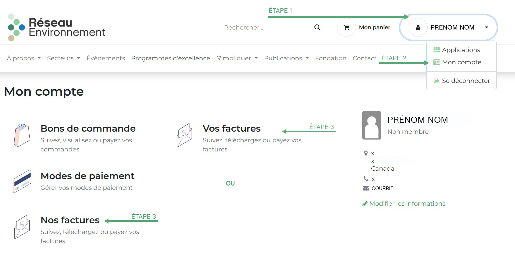 Connectez-vous à votre compte, puis cliquez en haut à droite sur votre nom, cliquez sur "Mon compte" dans le menu déroulant, vous verrez ensuite les informations recherchées.