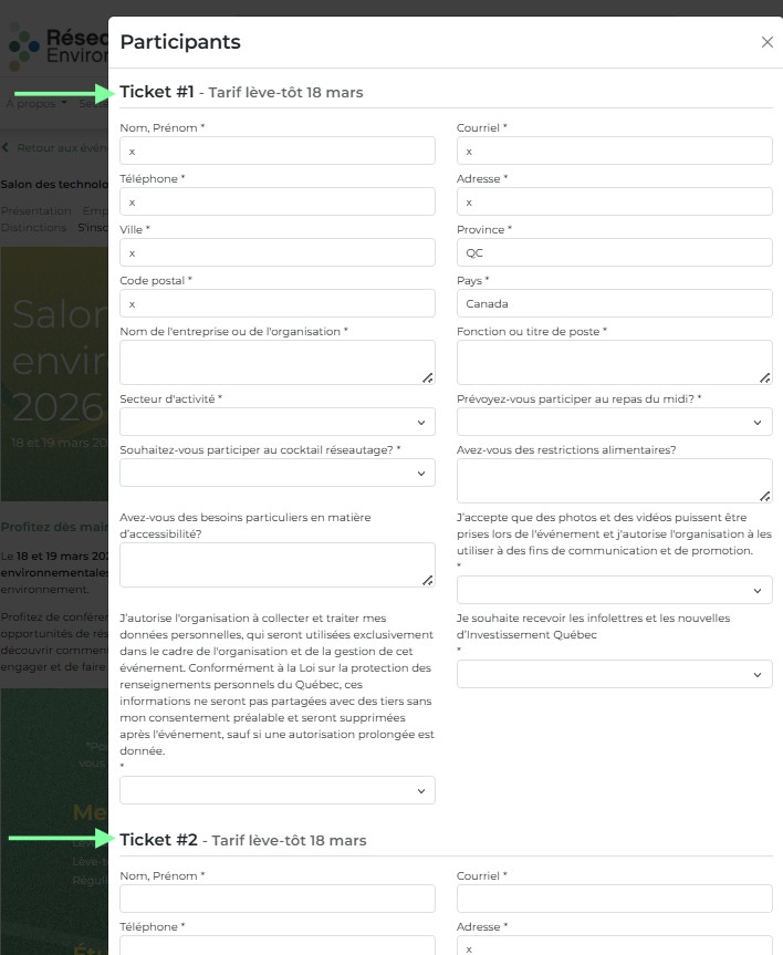 Choisissez simplement le nombre de billets nécessaires, puis saisissez les informations des participants pour chaque billet à l'étape suivante.
